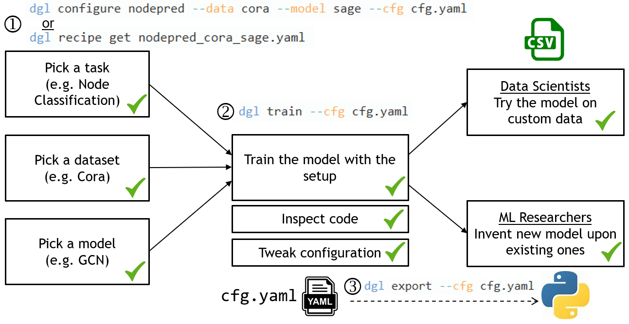 1. Use `dgl export` to generate a *self-contained, reproducible* Python script for advanced