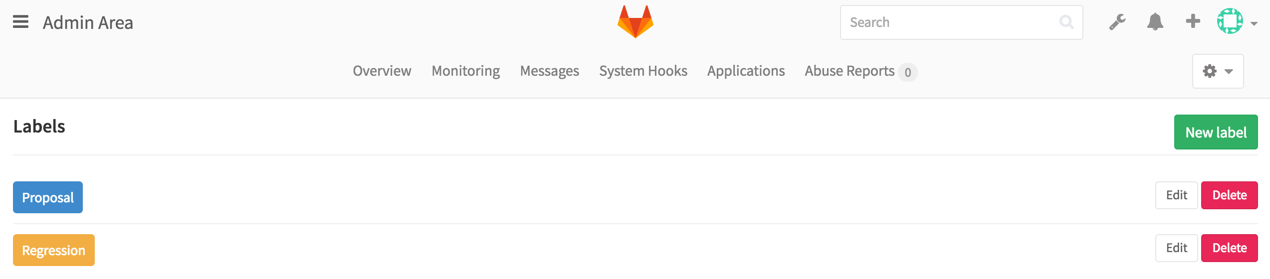 In the Admin Area, you can manage labels for the GitLab instance. For more details, see Labels.