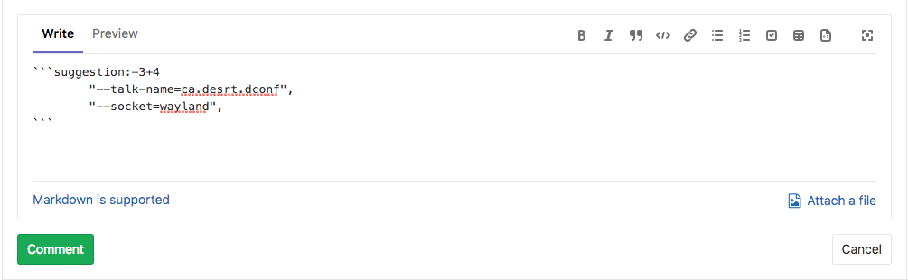 If you need to make a suggestion that involves a fenced code block, wrap your suggestion in four backticks instead of the usual three.