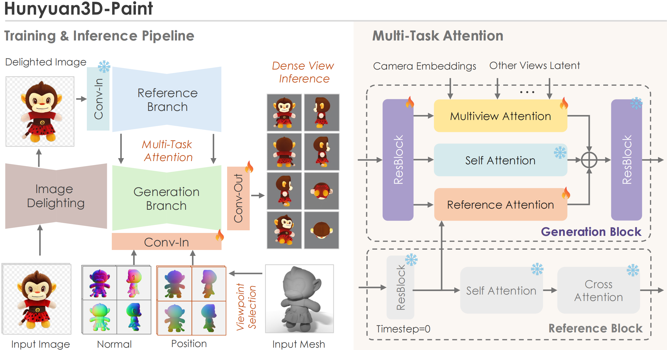 # Hunyuan3D-2 腾讯提出Hunyuan3D-2,用于生成带有高分辨率纹理贴图的高保真度3D模型。 ## 论文 `无` - 技术文档参考:[Hunyuan3D 2.0: Scaling Diffusion Models for High Resolution Textured 3D Assets Generation](./assets/report/Tencent_Hunyuan3D_2_0.pdf ) ## 模型结构 Hunyuan3D-DiT采用了具有双流和单流块的 transformer 架构,是一种基于流的扩散模型,旨在根据给定的图像提示生成高保真和高分辨率的3D形状。