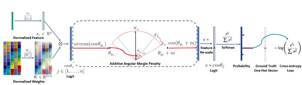 # ArcFace ## 论文 - https://arxiv.org/pdf/1801.07698.pdf ## 模型结构 这篇文章提出一种新的用于人脸识别的损失函数:additive angular margin loss,直接在角度空间(angular space)中最大化分类界限,基于该损失函数训练得到人脸识别算法ArcFace。
