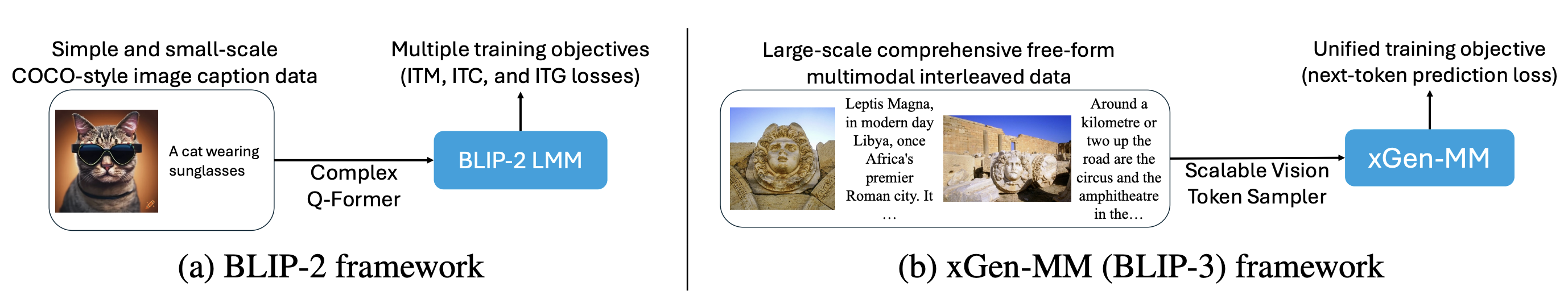 BLIP-3,也叫xGen-MM,是一个用于开发Large的框架多模态模型(lmm)。该框架包括精心准备的数据集、训练配方、模型体系结构,以及最终的lmm套件。xGen-MM是xGen-MultiModal的缩写,扩展了Salesforce xGen计划的基础人工智能模型。模型经过一系列严格的评估的任务,包括单图像和多图像基准。预训练基础模型显示出很强的情境学习能力和指令微调模型在具有相似模型大小的开源lmm中展示了优异的竞争表现。此外,模型还引入了一个安全调优模型DPO,旨在减轻幻觉等有害行为,提高安全性。