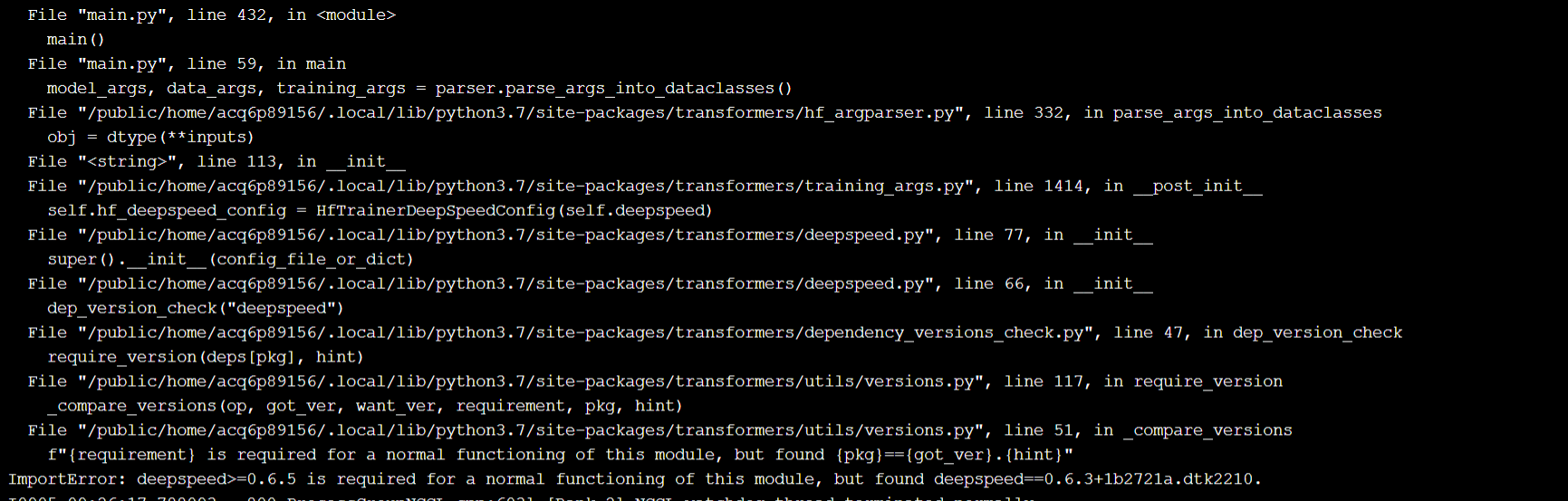 File "/public/home/acq6p89156/.local/lib/python3.9/site-packages/transformers/deepspeed.py", line 378, in deepspeed_init