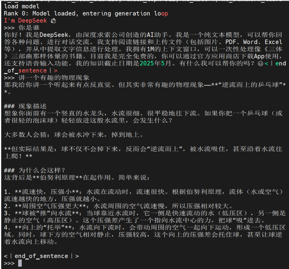 ## DeepSeek-V4 ## 论文 [DeepSeek-V4: Towards Highly Efficient Million-Token Context Intelligence](https://huggingface.co/deepseek-ai/DeepSeek-V4-Pro/blob/main/DeepSeek_V4.pdf) ## 模型简介 DeepSeek-V4 系列的预览版本,包含两款强大的混合专家(Mixture-of-Experts, MoE)语言模型:DeepSeek-V4-Pro(总参数量 1.6T,激活参数量 49B)和 DeepSeek-V4-Flash(总参数量 284B,激活参数量 13B),两者均支持 百万 token 的上下文长度。 DeepSeek-V4 系列在架构与优化方面引入了多项关键升级: - 混合注意力架构:设计了一种混合注意力机制,结合压缩稀疏注意力(Compressed Sparse Attention, CSA)与重度压缩注意力(Heavily Compressed Attention, HCA),显著提升长上下文处理效率。在百万 token 上下文场景下,DeepSeek-V4-Pro 相比 DeepSeek-V3.2 仅需 27% 的单 token 推理 FLOPs 和 10% 的 KV 缓存。 - 流形约束超连接(Manifold-Constrained Hyper-Connections, mHC):在传统残差连接基础上引入 mHC,增强跨层信号传播的稳定性,同时保留模型的表达能力。 - Muon 优化器:采用 Muon 优化器,以实现更快的收敛速度和更高的训练稳定性。 ## 环境依赖 | 软件 | 版本 | | :------: |:-------:| | DTK | 26.04 | | Python | 3.10.12 | | Torch | 2.9.0+das.opt1.dtk2604.20260331.g4e3c1e7 | | Tilelang | 0.1.7.post3+cpu.git52700923 | 当前仅支持镜像: harbor.sourcefind.cn:5443/dcu/admin/base/custom:torch-2.9.0-ubuntu22.04-dtk26.04-deepseek-v4-0425 - 挂载地址`-v`根据实际模型情况修改 ```bash docker run -it \ --shm-size 200g \ --network=host \ --name deepseek-v4 \ --privileged \ --device=/dev/kfd \ --device=/dev/dri \ --device=/dev/mkfd \ --group-add video \ --cap-add=SYS_PTRACE \ --security-opt seccomp=unconfined \ -u root \ -v /opt/hyhal/:/opt/hyhal/:ro \ -v /path/your_code_data/:/path/your_code_data/ \ harbor.sourcefind.cn:5443/dcu/admin/base/custom:torch-2.9.0-ubuntu22.04-dtk26.04-deepseek-v4-0425 bash ``` 更多镜像可前往[光源](https://sourcefind.cn/#/service-list)下载使用。 ## 数据集 `暂无` ## 训练 `暂无` ## 推理 ### Pytorch #### 单机推理 ##### BF16 1. 模型转换与切分 ```bash #注意将脚本中对应的路径及参数设置成用户实际值 #其中:INPUT_FP8_HF_PATH为原始模型路径;OUTPUT_BF16_HF_PATH为bf16模型存放路径;SAVE_PATH为切分好的模型路径;mp根据实际卡数调整 cd convert_weight bash convert_weight.sh ``` 2. 启动对话推理 ```bash #注意将脚本中对应的路径及参数设置成用户实际值 cd ../inference-bf16 sh start_torch.sh ``` ##### FP8 1. 模型转换与切分 ```bash #注意将脚本中对应的路径及参数设置成用户实际值 #其中:--hf-ckpt-path为原始模型路径;--save-path为切分好的FP8模型的存放路径;MP根据实际卡数调整(默认为8) cd inference-fp8 bash cast_fp4_to_fp8.sh ``` 2. 启动对话推理 ```bash #注意将脚本中对应的路径及参数设置成用户实际值 sh start_torch_fp8.sh ``` ## 效果展示 **注意**:首次对话时由于kernel编译,可能会出现dtk hipcc编译警告,属于正常现象