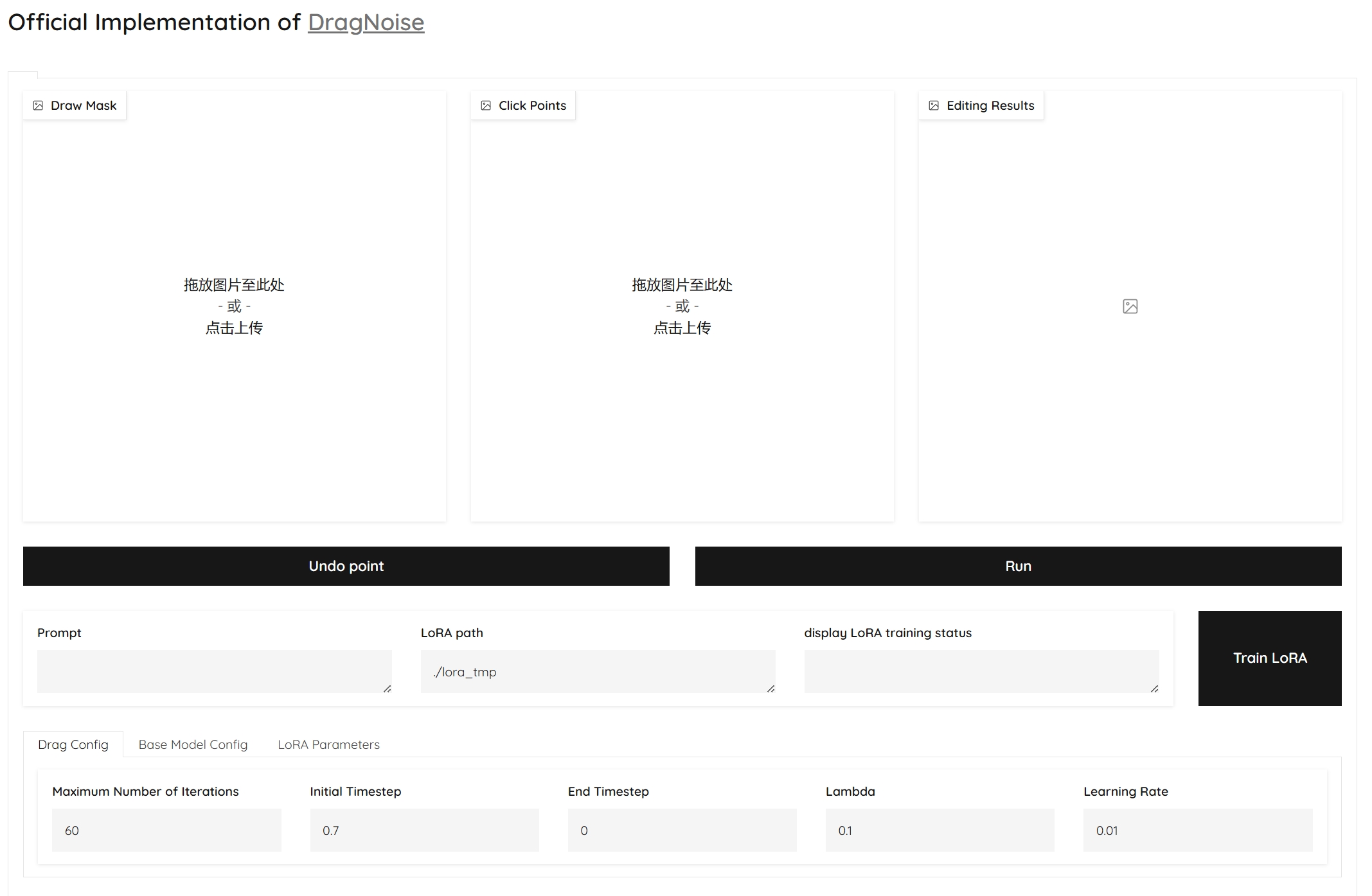 DragNoise利用扩散模型进行基于点的交互式图像编辑,算法整体思路沿着 DragDiffusion 算法: