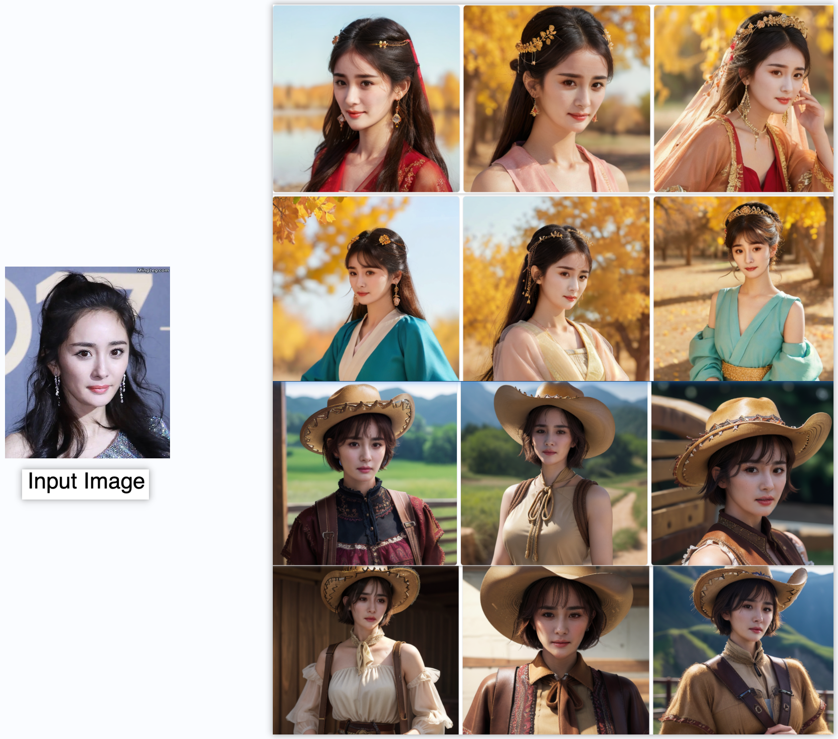 ## 算法原理 通常的文本图像生成算法生成的结果不能很好保留目标人物的人脸特征,本算法以Stable Diffusion为核心,基于一系列之前的sota算法(e.g., face detection, deep face embedding extraction, and facial attribute recognition)组合了一种新的数字形象生成算法来解决这个问题。