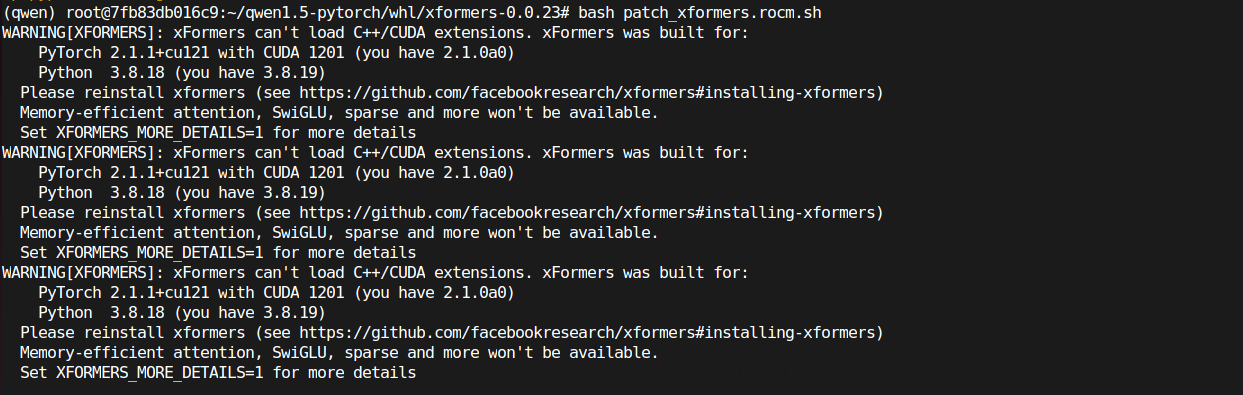 Qwen使用vllm推理时,xformers版本不对应