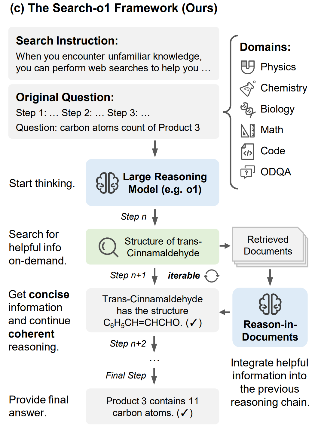 ## 算法原理 通过集成自主检索增强生成机制和文档内推理模块,实现了在推理过程中动态获取和整合外部知识的能力,同时,确保推理过程的连贯性和逻辑一致性。