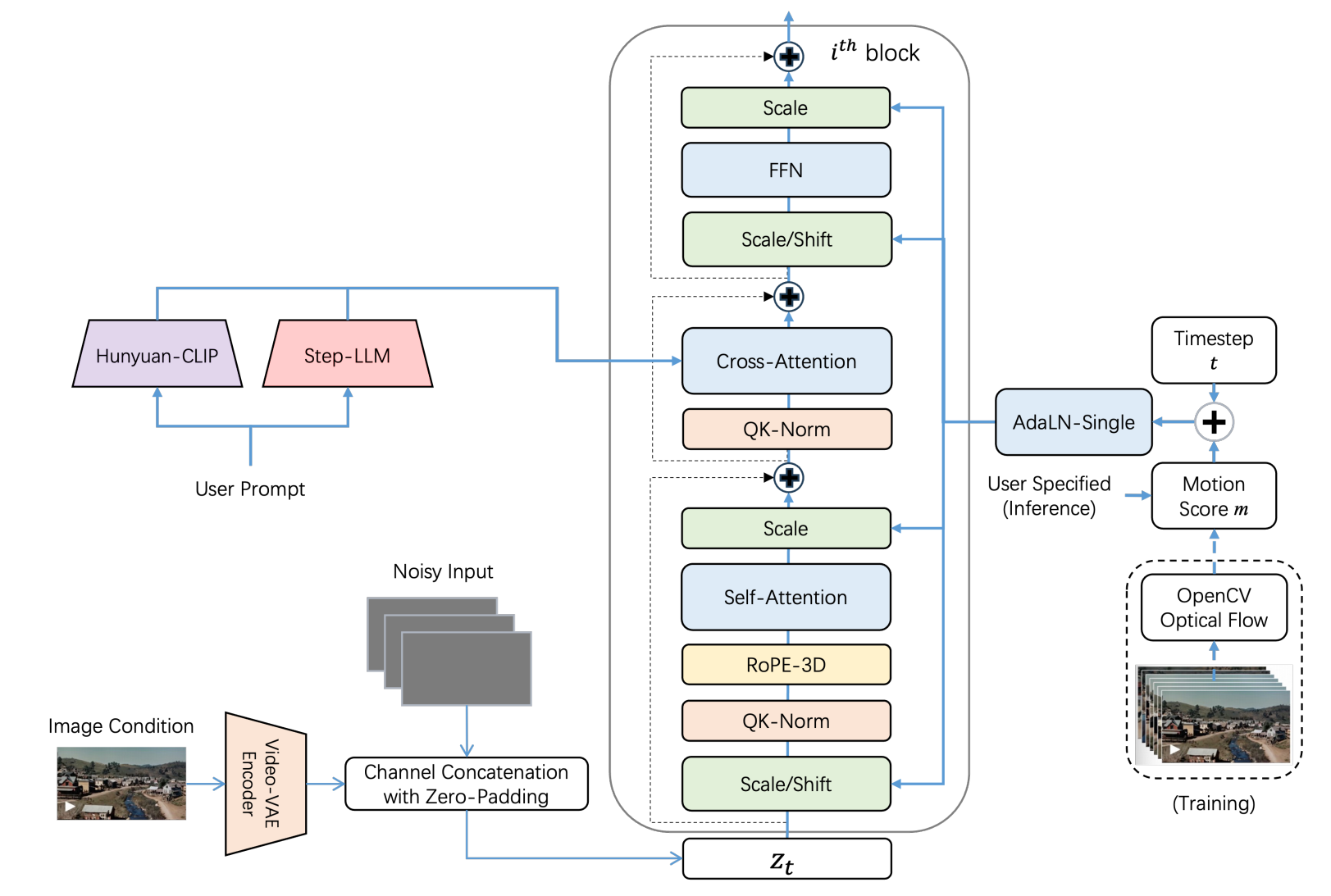 # Step-Video-TI2V ## 论文 ` Step-Video-TI2V Technical Report: A State-of-the-Art Text-Driven Image-to-Video Generation Model ` - https://arxiv.org/abs/2503.11251 ## 模型结构 Step-Video-TI2V 是基于 Step-Video-T2V 进行训练的。引入了两个关键改进:图像条件和运动条件。这些增强功能支持从给定图像生成视频,同时允许用户调整输出视频的动态程度。