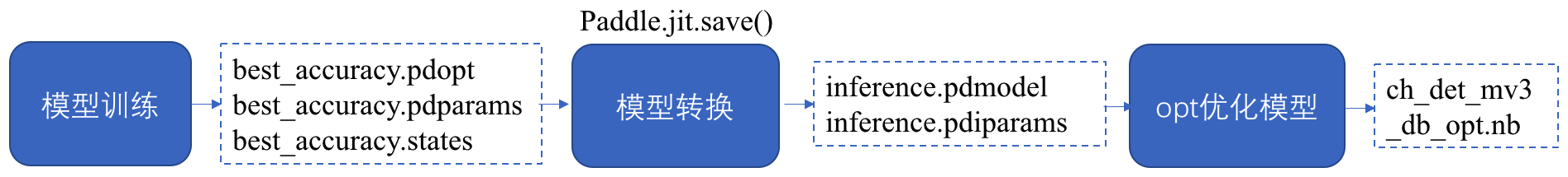 |训练模型、预训练模型|\*.pdparams、\*.pdopt、\*.states |训练过程中保存的模型的参数、优化器状态和训练中间信息,多用于模型指标评估和恢复训练|